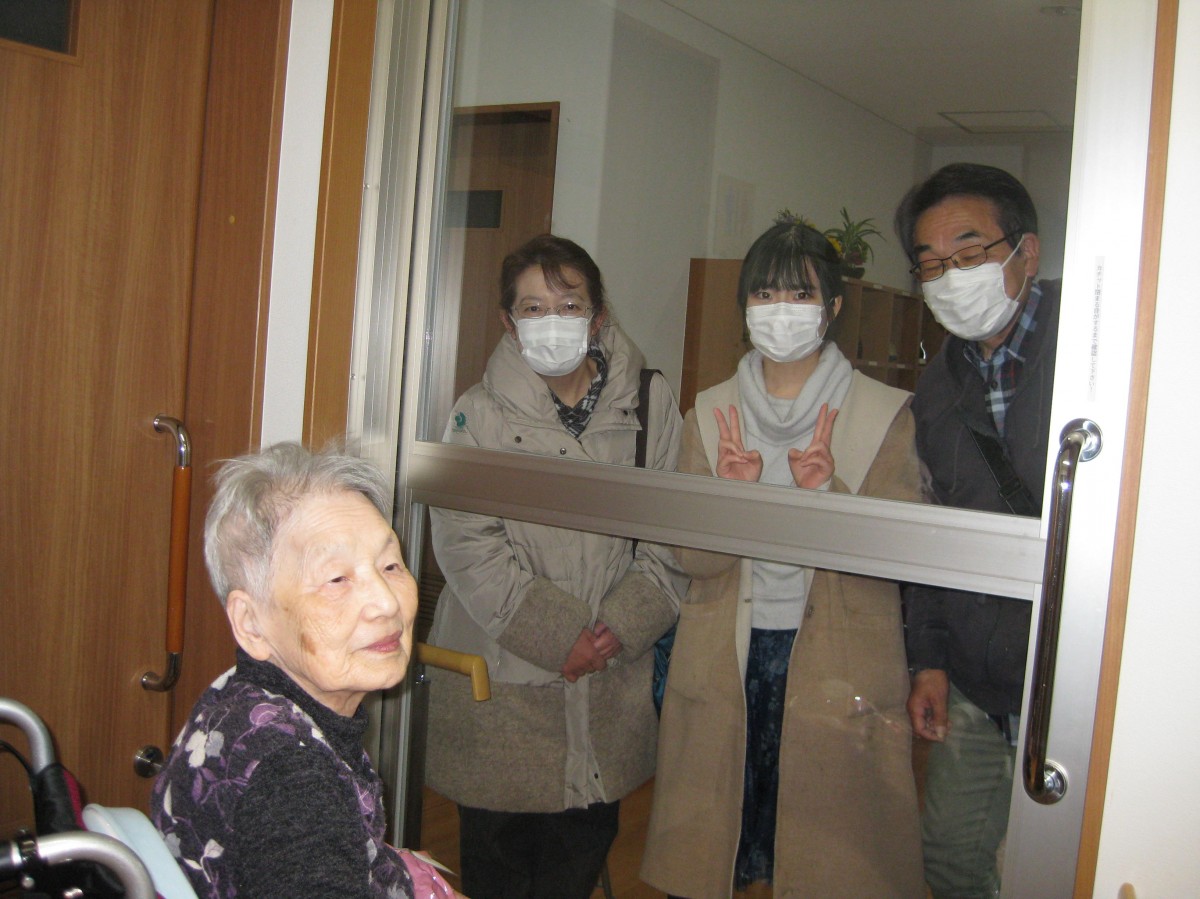 こんにちは!グループホームみんなの家・あきがせです。よろしくお願いいたします。ご家族様お揃いでご様子を見に来て下さいました。お孫様もご一緒で思わず感激され涙・涙でした。今年は帰りたかったのに!!私たちも辛いです。本当に辛い年でした。早い収束を期待するばかりです。チョコレート、お菓子をお持ちになられ嬉しそうでした。お帰りになりチョコレートを美味しく頂いていました。