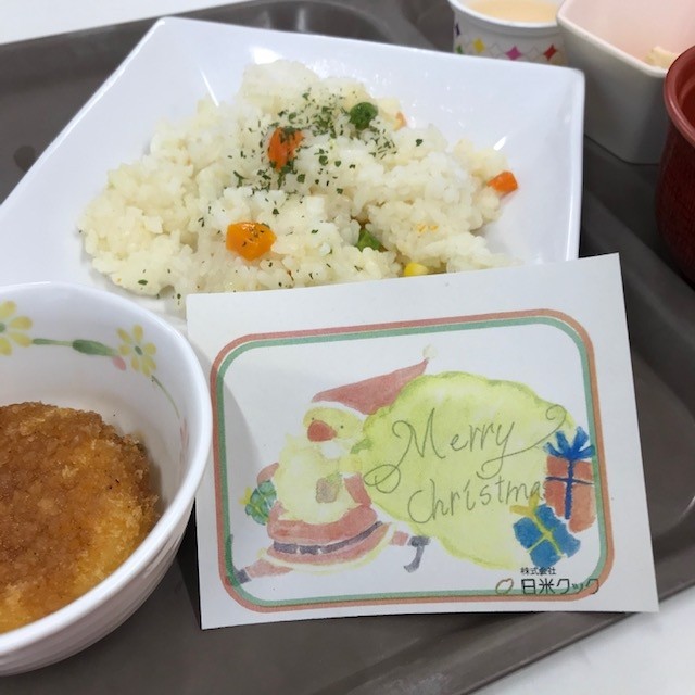 クリスマス当日の昼食はピラフやトマトスープなど洋食メニューでした☆☆