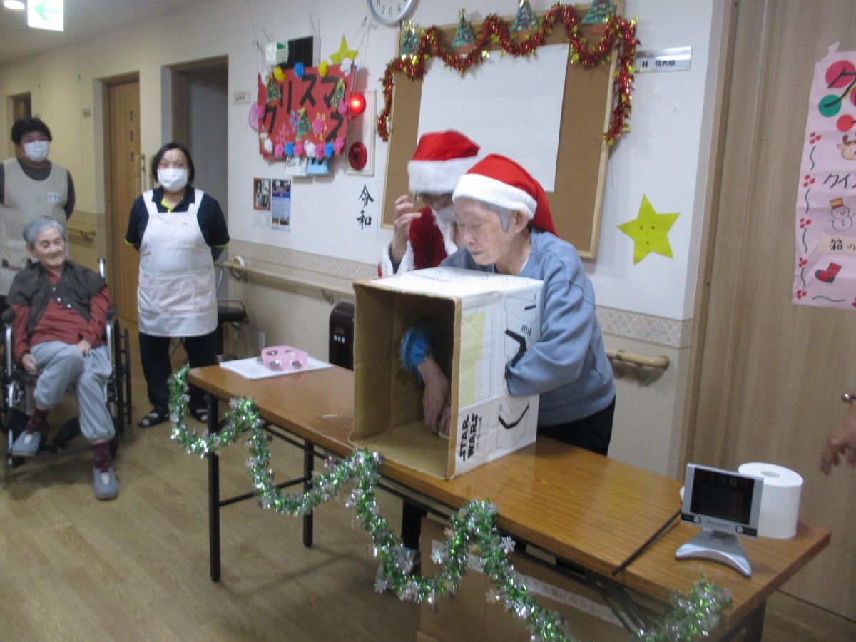 クイズ「箱の中身はなあに?」では、箱の手を入れて答えて頂きました。