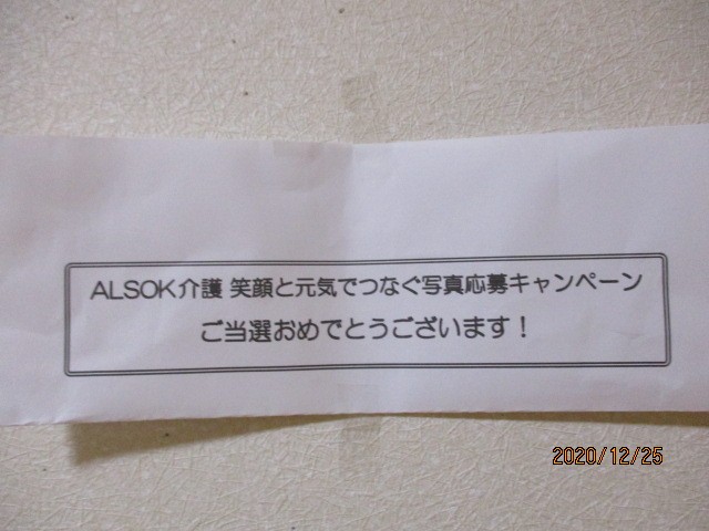 「ALSOK介護 笑顔と元気でつなぐ写真応募キャンペーン」に当選♪