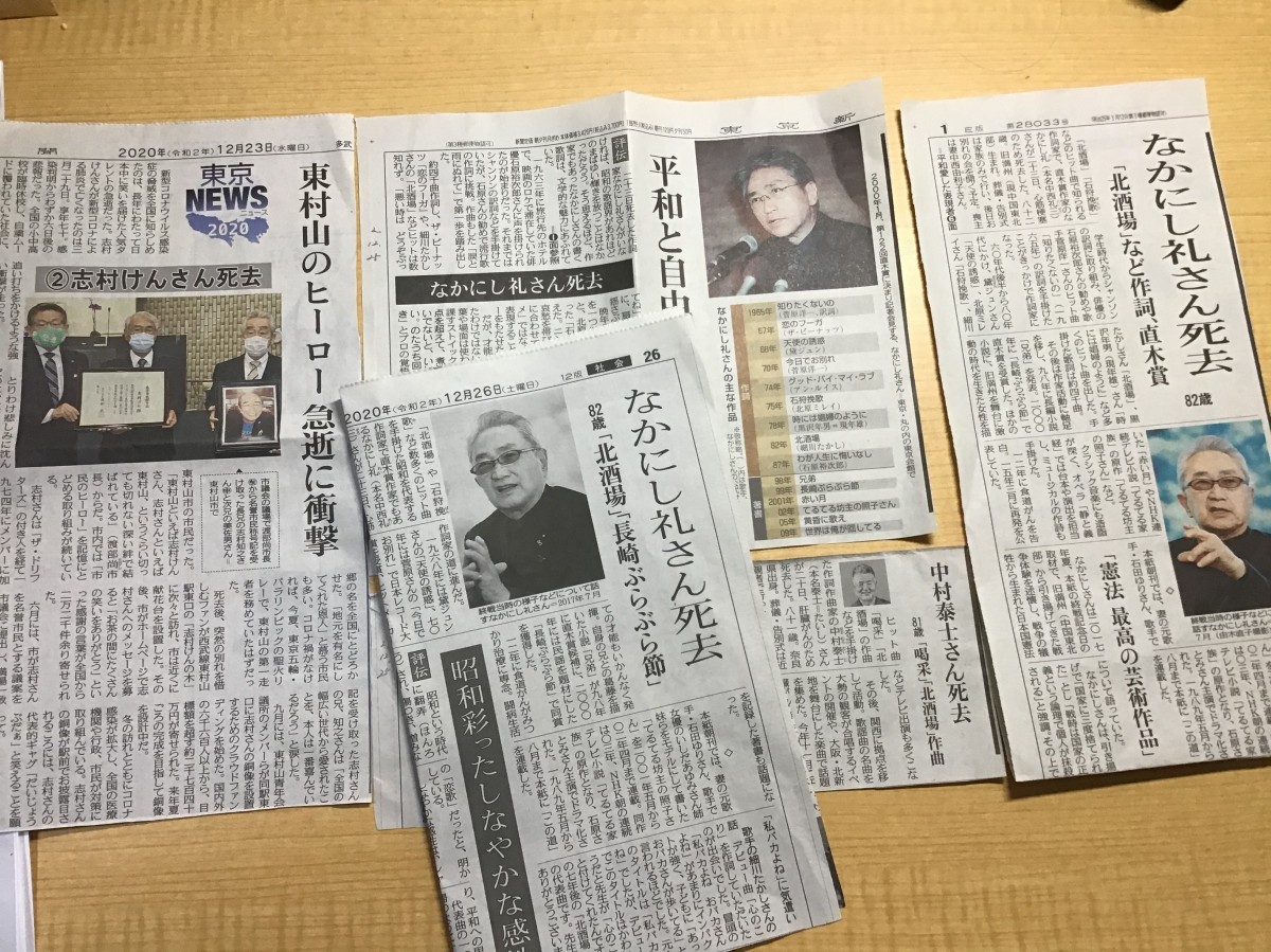 志村けんさん。なかにし礼さんの記事でした。