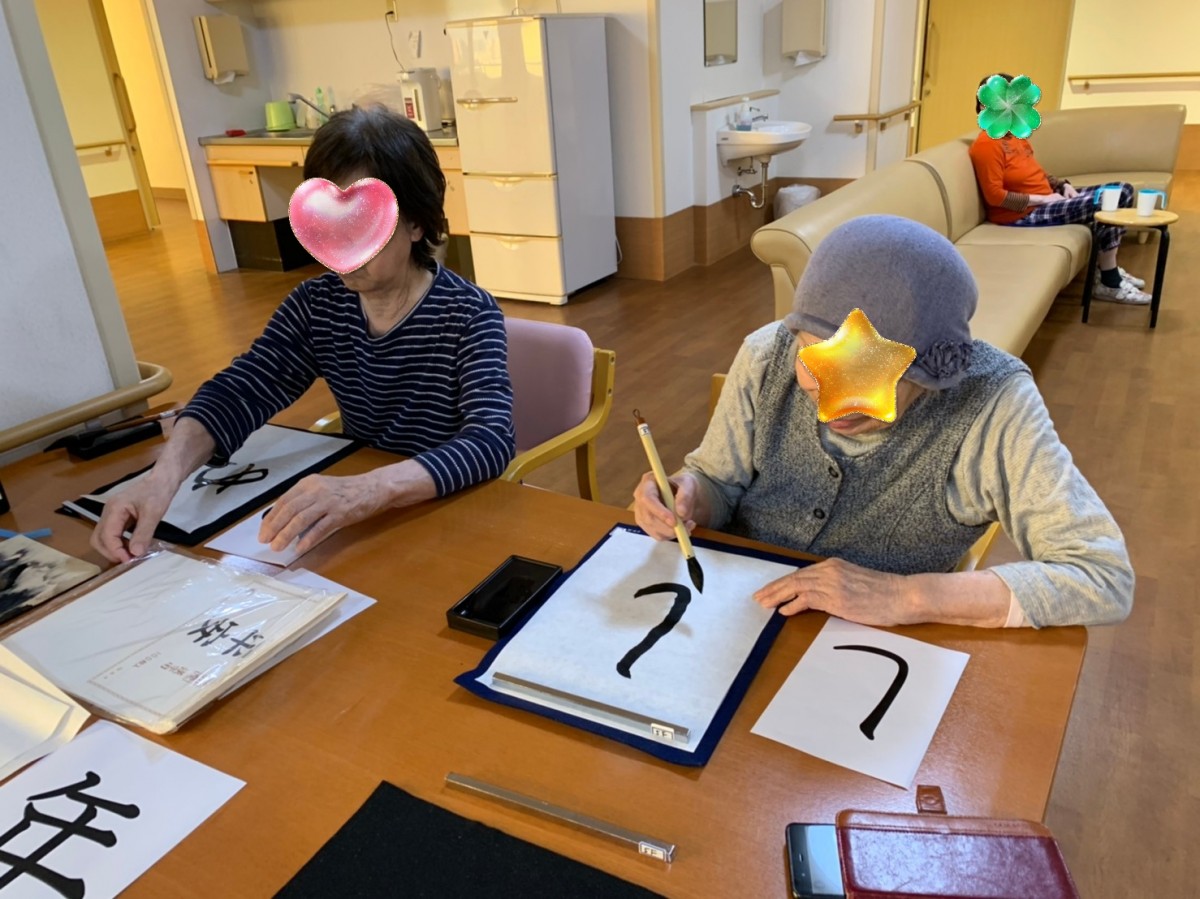 ご入居者様同士で勇気を分かち合い、チャレンジした書道!