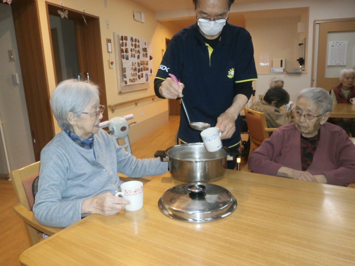 新年明けましておめでとうございます!10時のお茶の時間に甘酒を用意いたしました!