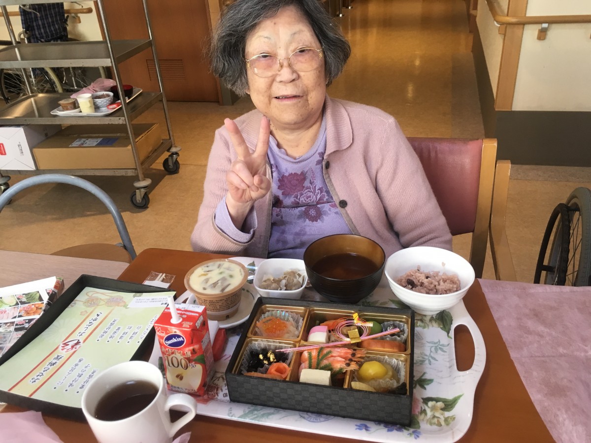 おせち料理の他に、お赤飯も炊きました。午後のレクもお正月らしくかるたに双六・・。今年も「明るく」「楽しく」「健康第一」で頑張りましょう!!