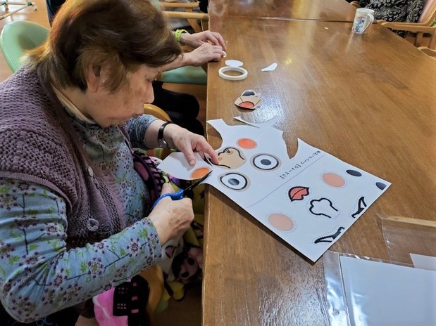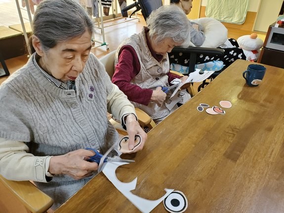その前に、福笑いのパーツをご入居様に切って頂きました(*^-^*)