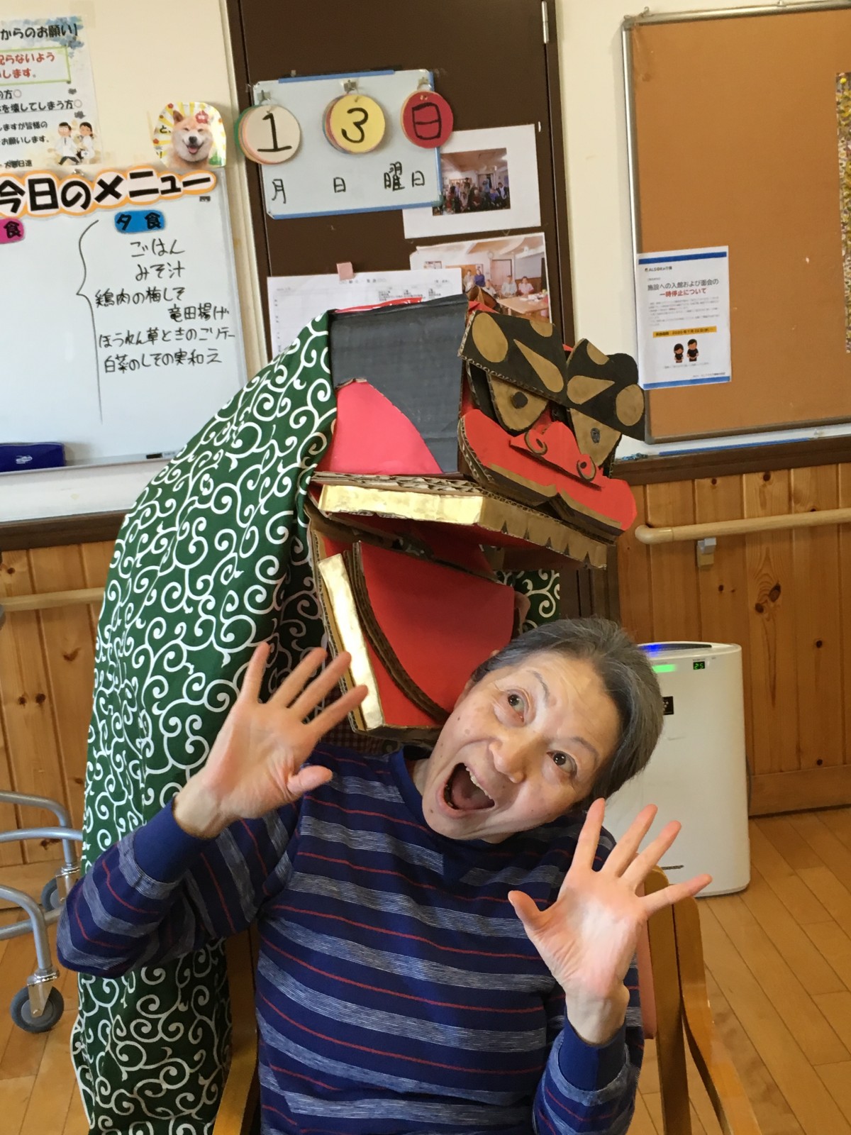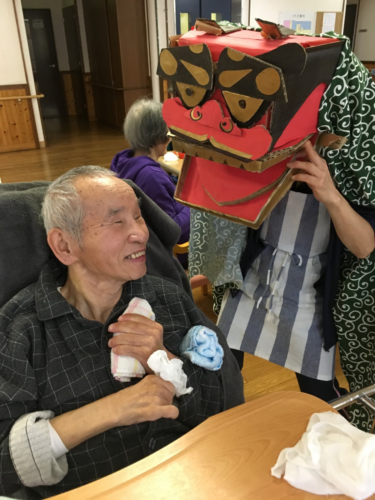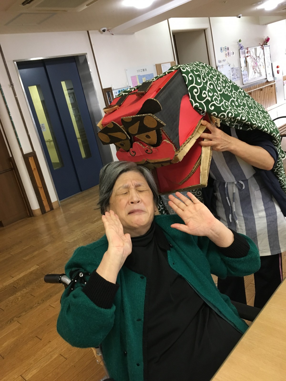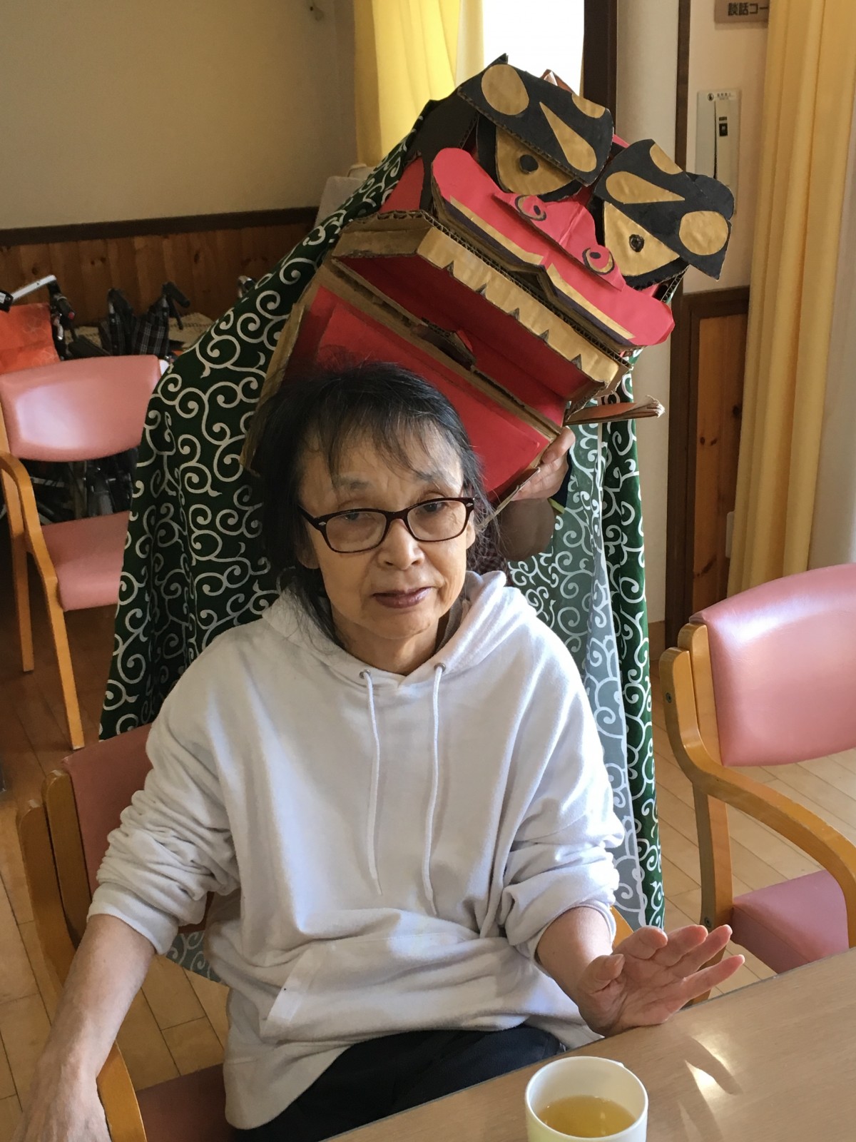 手作りの獅子舞でご入居者様の頭をガブガブとしました(笑)