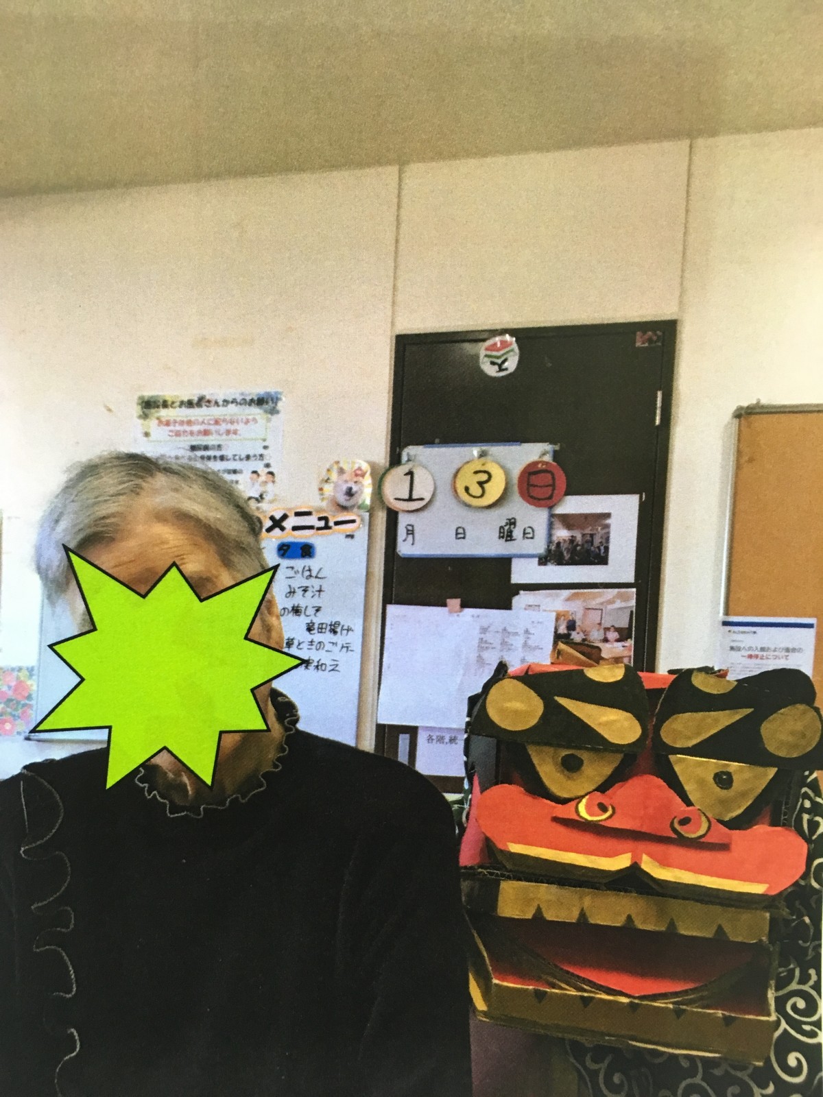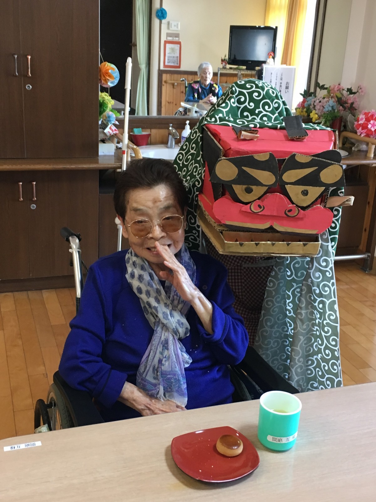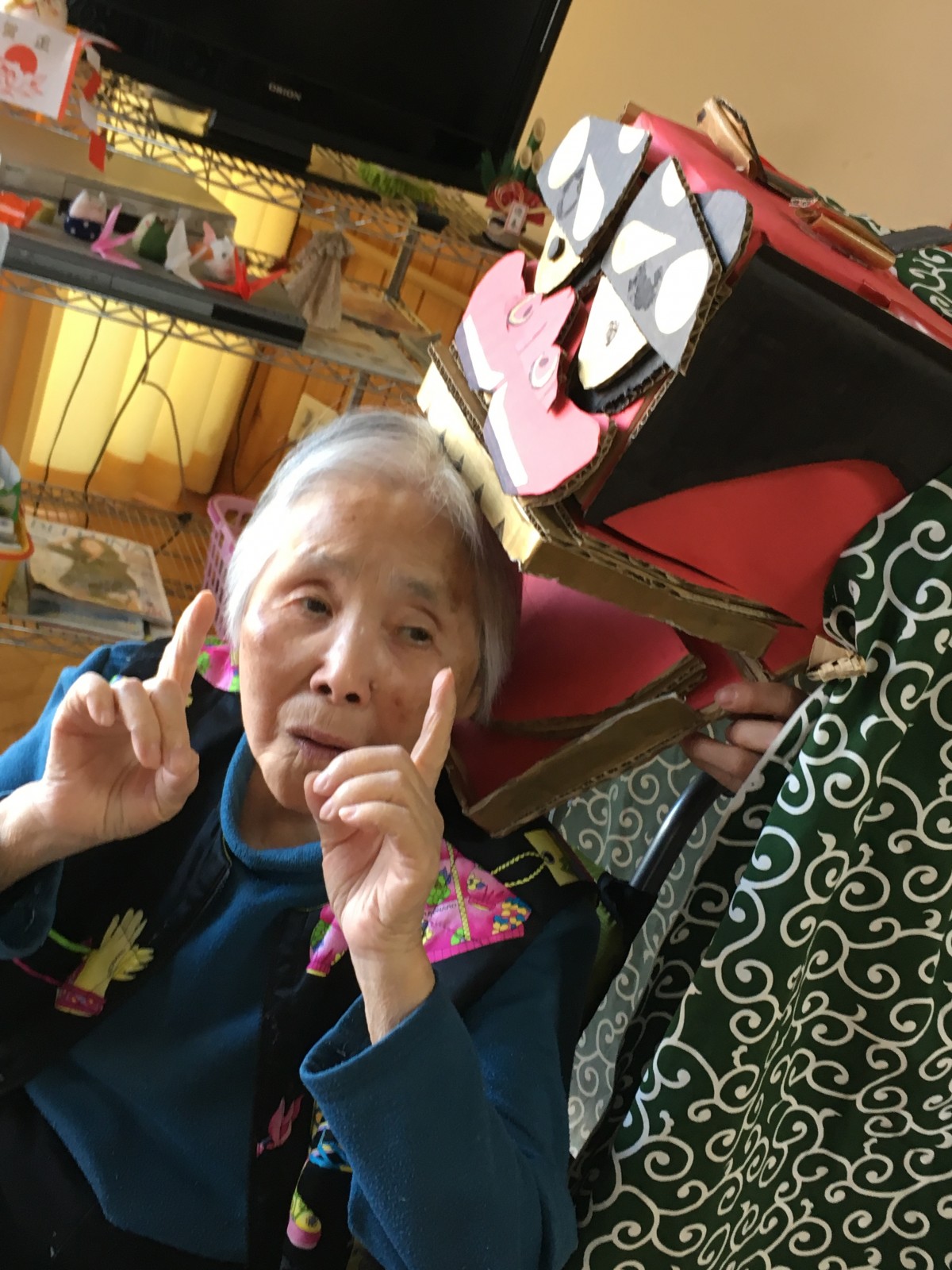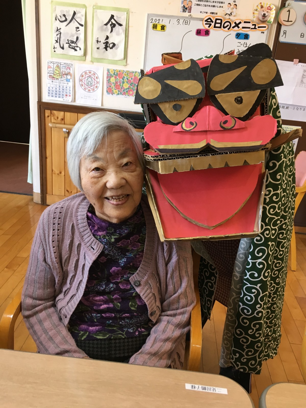手作りの獅子舞でご入居者様の頭をガブガブとしました(笑)