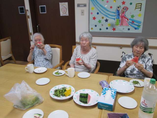 スイカやトウモロコシ、枝豆をお召し上がりいただきながら