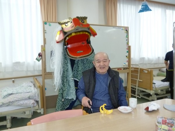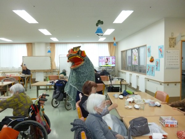 吹き飛ばそう!と”新春獅子舞い”披露しました。