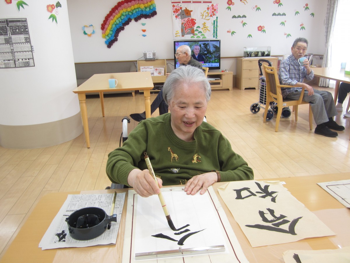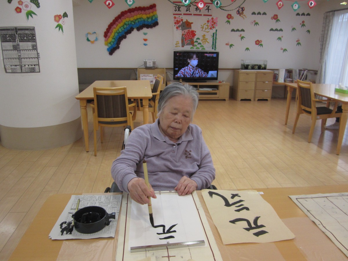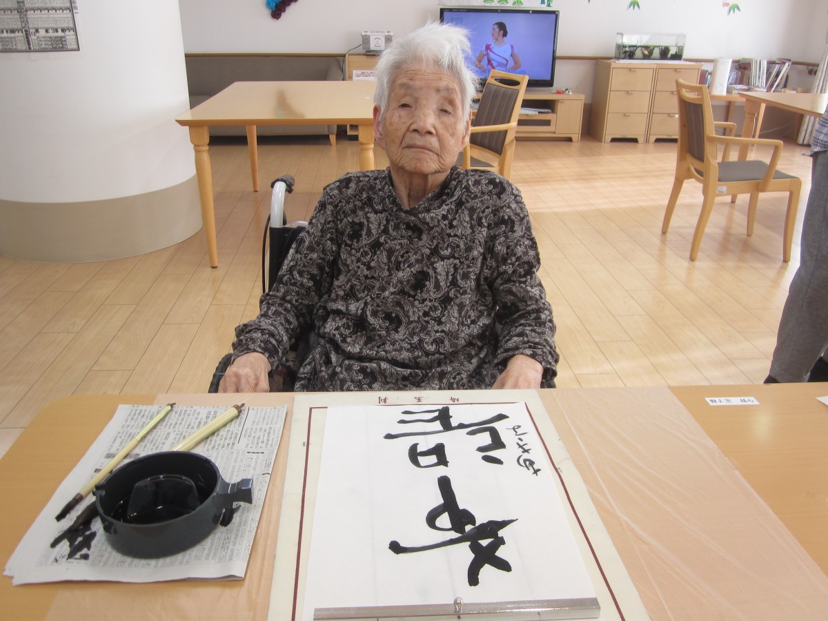 3階の利用者様の書初めの記念撮影を一部紹介!