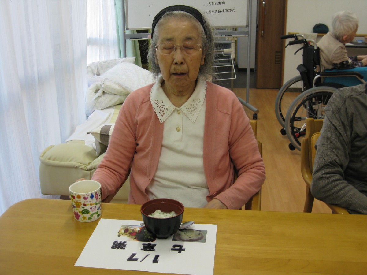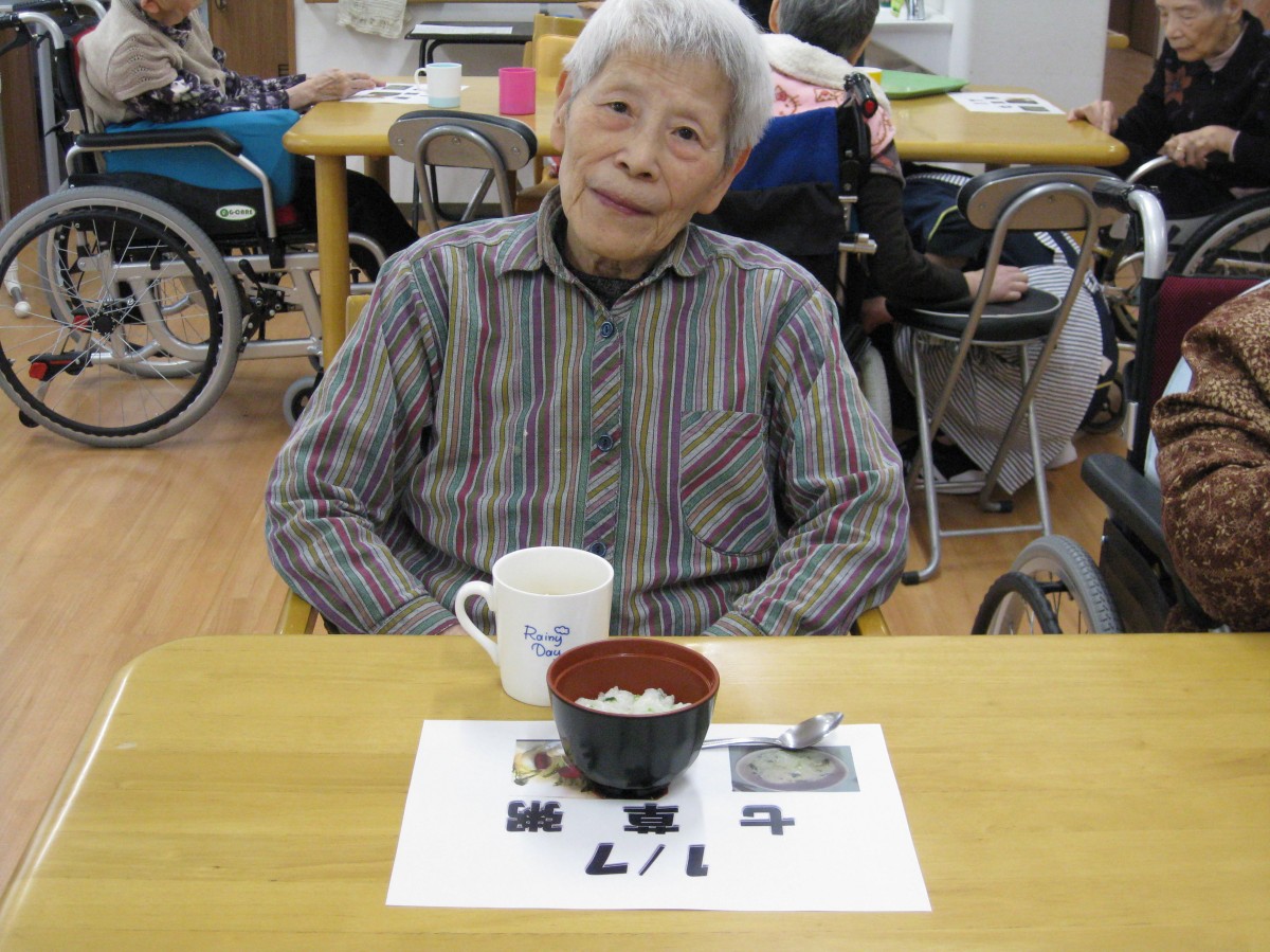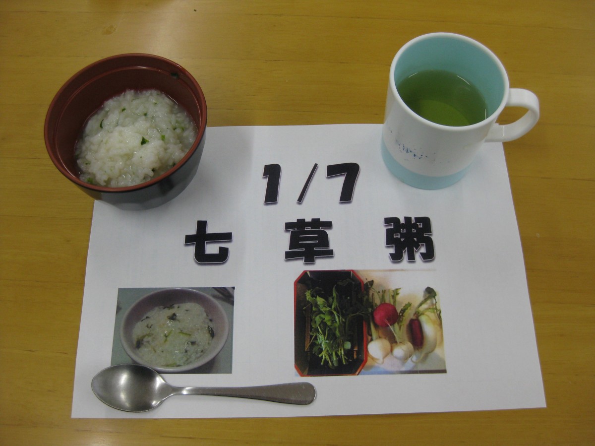 こんにちは!グループホームみんなの家・あきがせです。よろしくお願いいたします。春の七草。せり・なずな・ごぎょう・はこべら・ほとけのざ・すずな・すずしろの7種類です。7種類の野菜を入れてお粥のして提供しました。好評でもっと食べた~い!! 作り甲斐があります(笑) 七草粥を食べて今年も健康で過ごしたいと思います。みんな黙々と召し上がられていました。