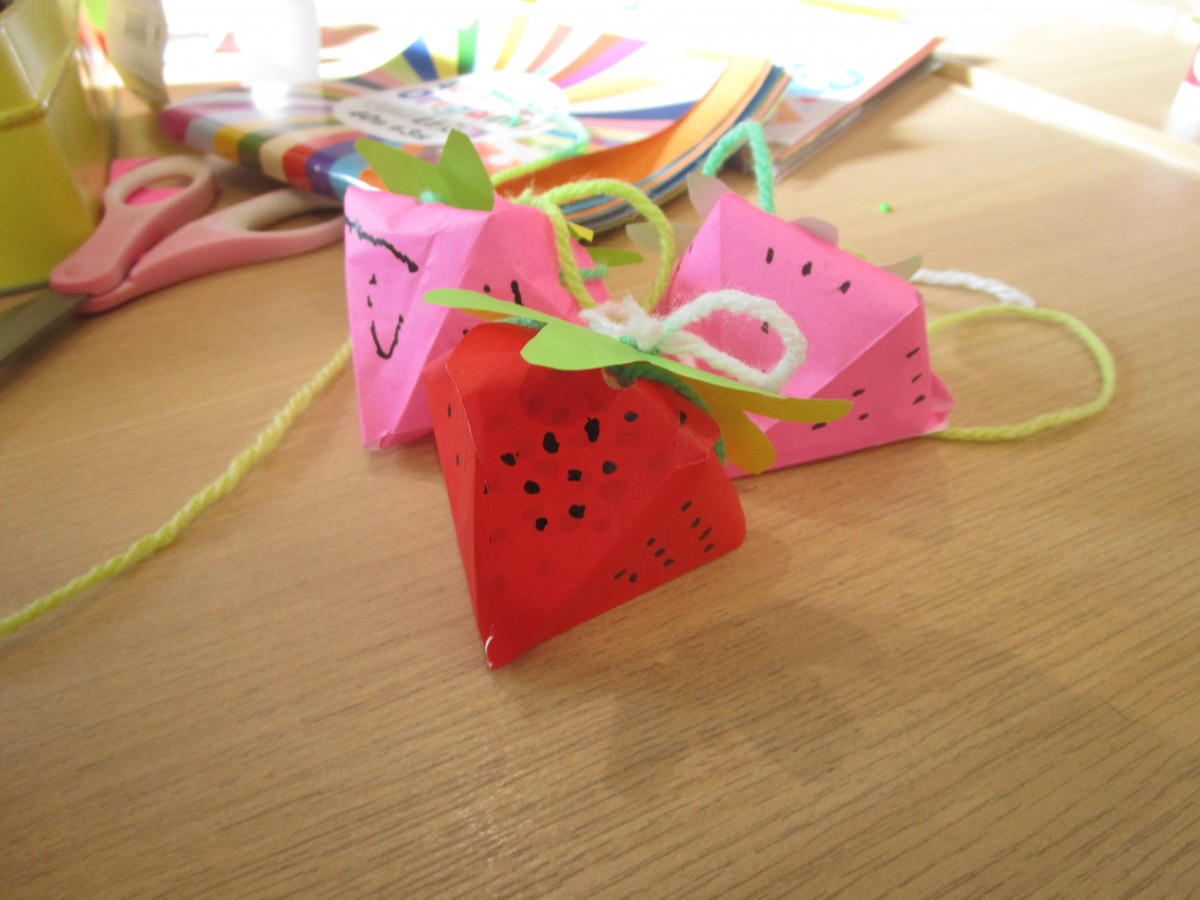 折り紙で「イチゴ」を折ってみました♪
