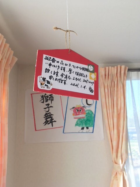 出来上がった絵馬は、こんな風に吊り下げました~(^^♪
