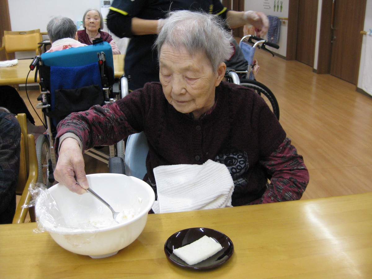 こんにちは!グループホームみんなの家・あきがせです。よろしくお願いいたします。今日はサンドイッチを作りました。これ何~。のせるの?いらないよ。と仰られます。食べ始めると甘い・・・美味しい!!作ったの?上手いね!褒めてくれて作り甲斐があります。