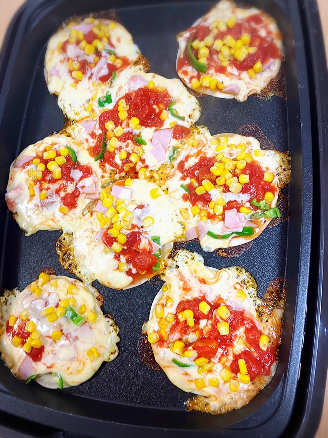 ◉コーン・ピーマン・野菜・とろけるチーズなどお好きにトッピングする。
