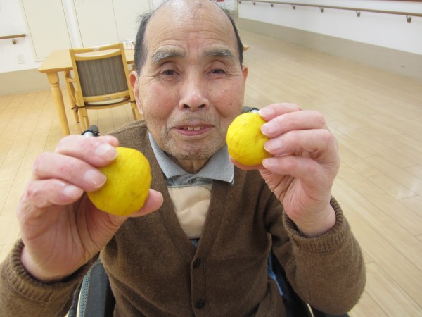 ご利用者様の皆様、ゆず風呂に入り「イイ匂い♪気持ちがいい♪」と笑顔で話されていました\(^o^)/
