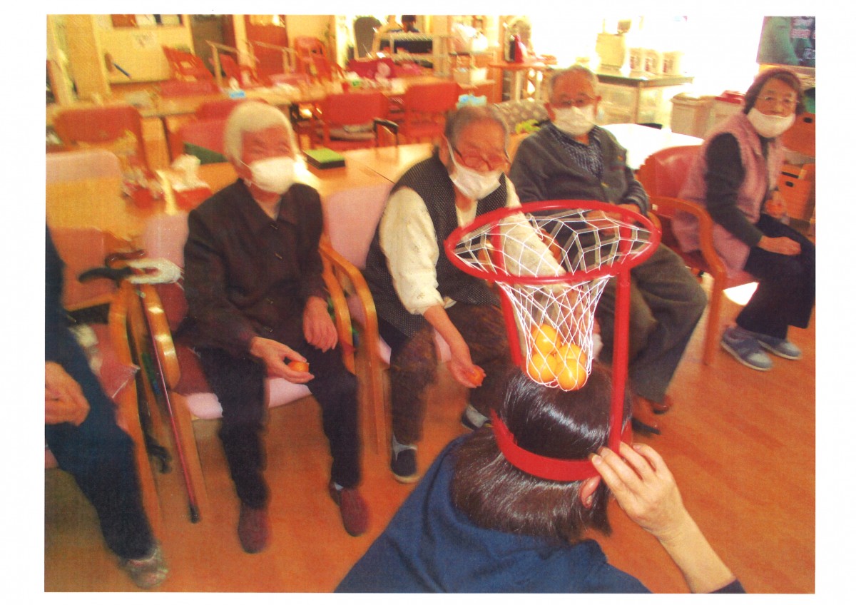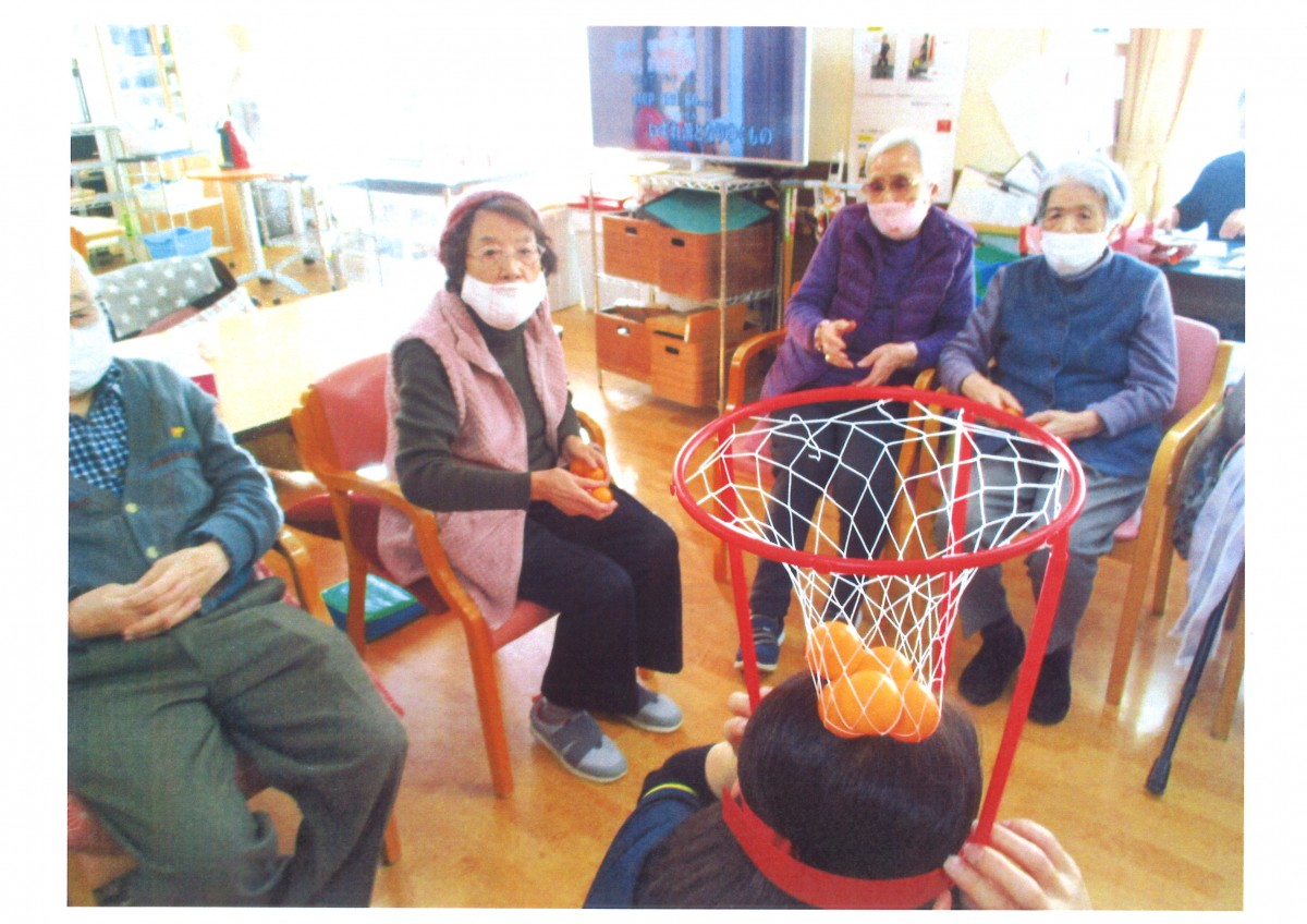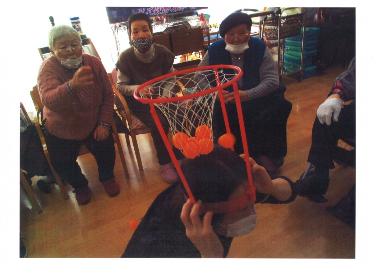 こんにちは。デイサービスセンター遊・川越南大塚です。 1月13日は“人間バスケット”を行いました(#^.^#) 職員が頭にバスケットをつけてご利用者様のもとへ・・・・ 小さい玉ですが、どんどんバスケットに吸い込まれていきました!