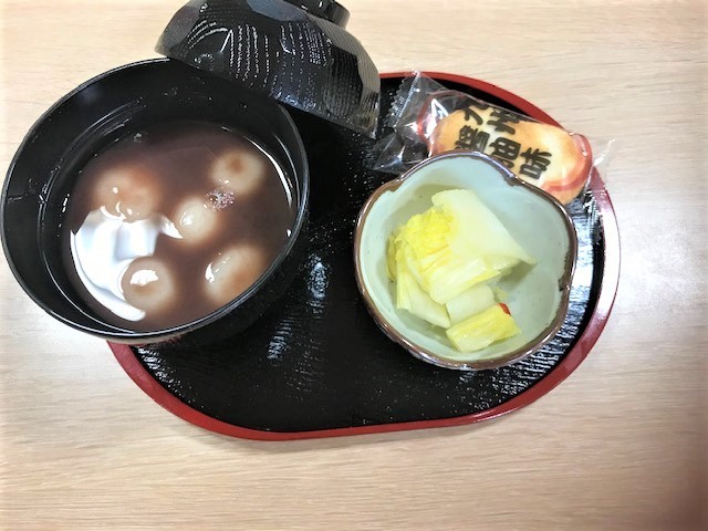 「鏡開き」も日本の風習ではありますが、鏡餅は本物ではなく…また偽物お餅(大根餅)でお汁粉を提供しました。