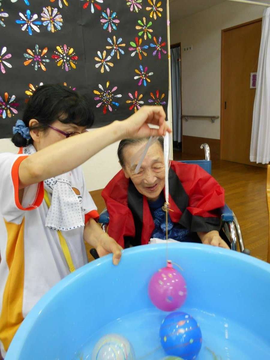 うちのホームは楽しみの一つとして夏祭りイベントを行いました。