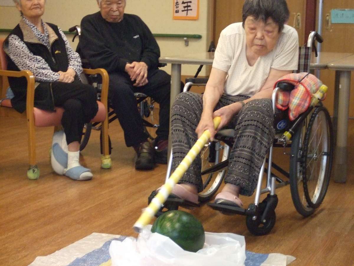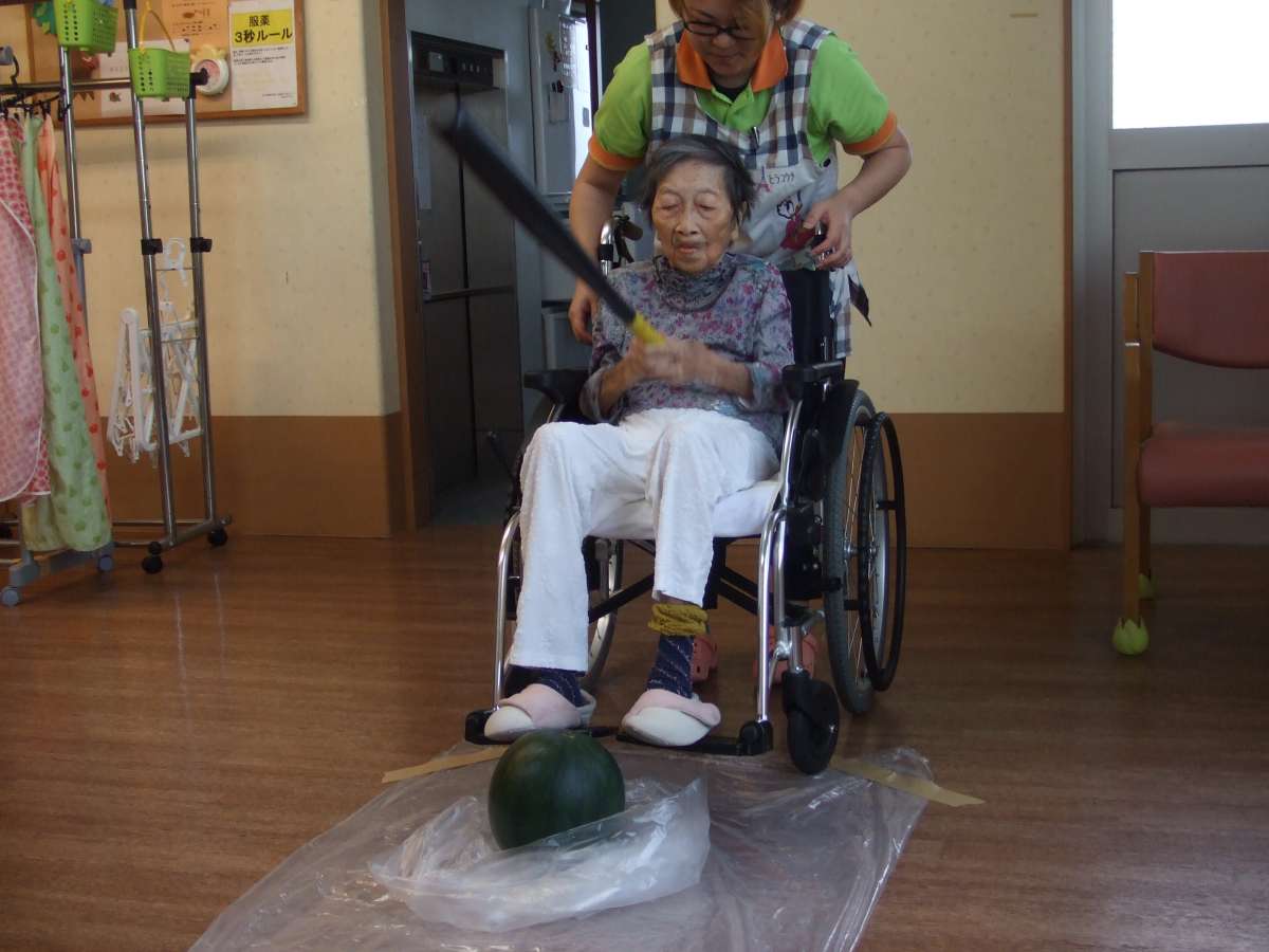 さて,みんなの家清河寺2では8月25日(金)にスイカ割りを行いました。さらに9月23日(土)には,16:00から秋祭りを開催いたします。ご利用者様,ご家族様,地域の皆様に感謝し,皆様のご愛好に対して還元できる様に「秋祭り」を盛り上げて参りたいと思います。