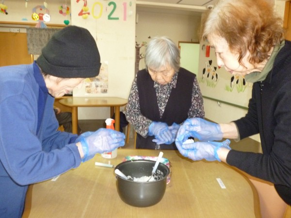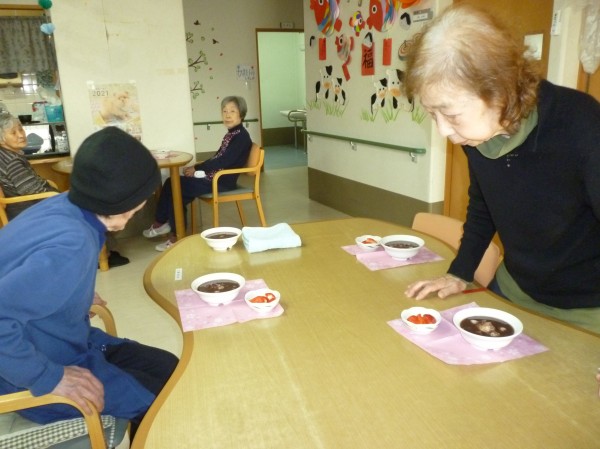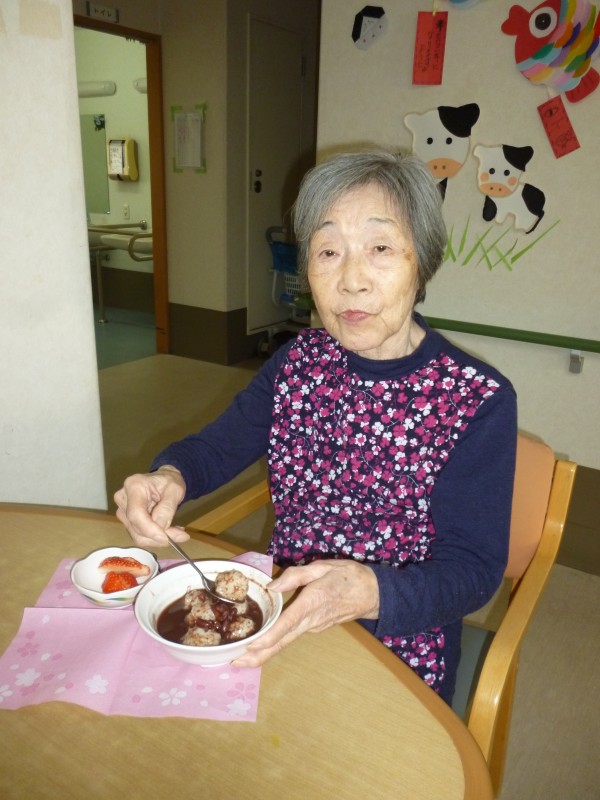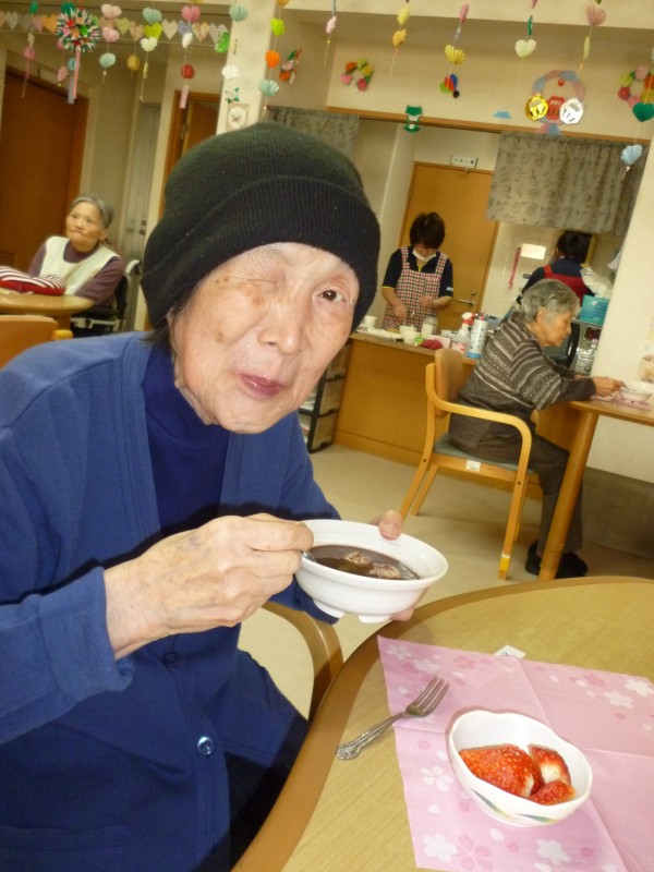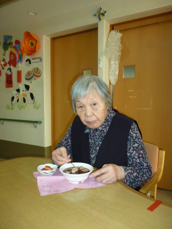 さすがにお餅はお出しできませんので、代わりにご飯を丸めてお汁粉にしました(´艸`*)
