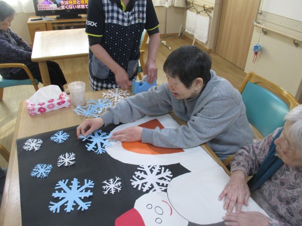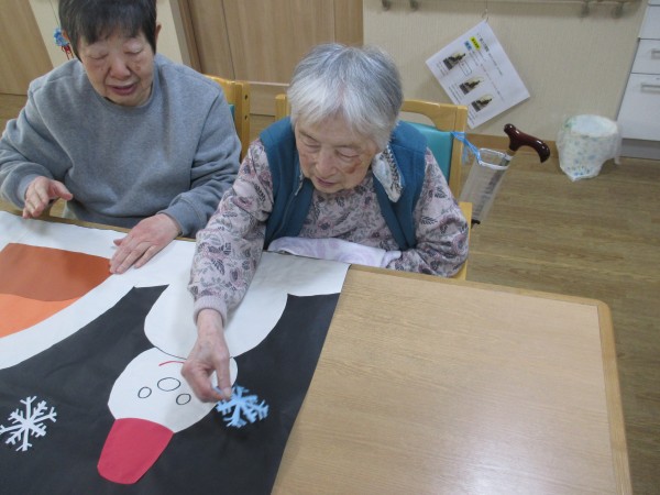 1月も中旬となりました。2階のご入居者様で壁飾りを作って頂きました。