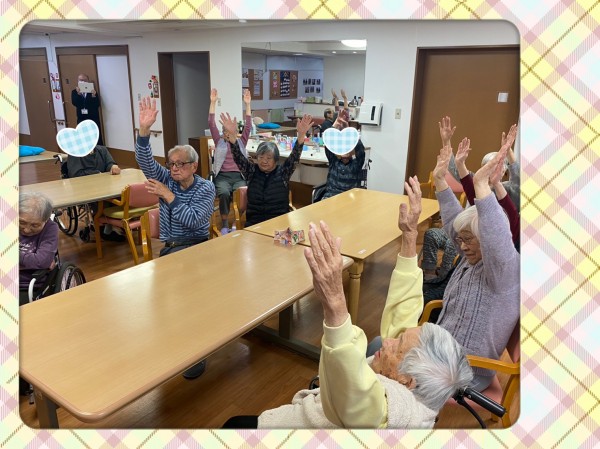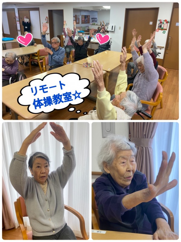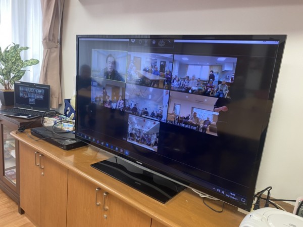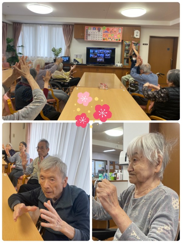普段なかなかお会い出来ない『三橋4丁目・6丁目・与野公園・新都心』の入居者様方々と♡画面上で一緒に体操しましたよ♬ 『こんにちは〜!与野公園て薔薇が有名だよね。新都心て都会〜☆』など、盛り上がりました♪沢山の笑顔が見られましたよ♡ 沢山脳と体を動かしてポカポカになりましたね(^。^)