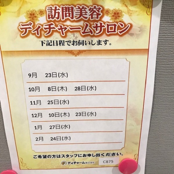 今年の訪問美容の日程のお知らせです。