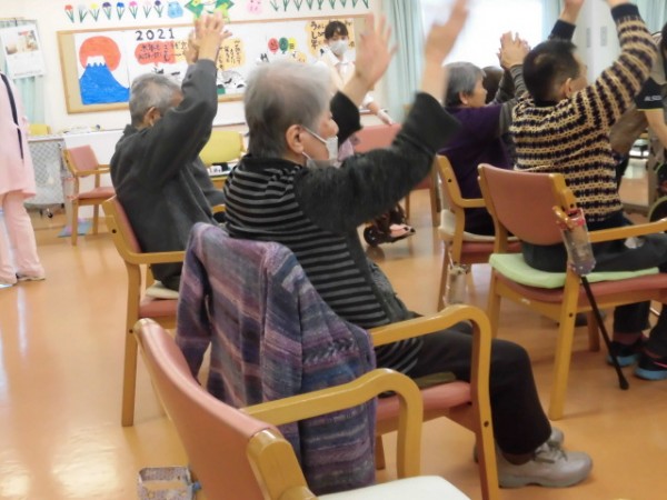 中には日頃の日常生活で使う動作の方も行いました。例えば椅子の立ち上がりの際、両手の持ち方と体の起こし方を同時にやる体操も行ってきました♪