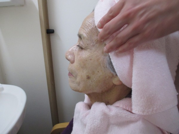 顔のマッサージを受けられ、とても気持ちよさそうにされていました。