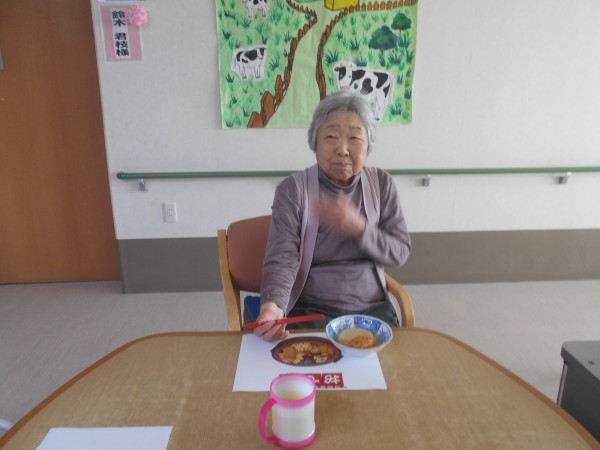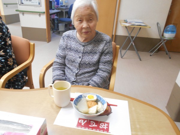 今月は2階では、おでんを作りました、職員さんが家で玉子と大根を煮てきてくれたので、とても美味しかっつたそうです