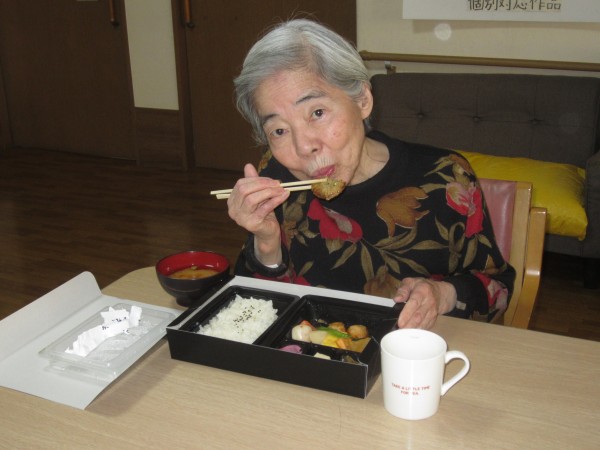 「すごく豪華なお弁当なのね」と仰られ、ご利用者様の中には目を輝か