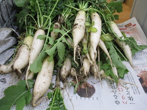 先日、内野本郷の畑に植えて育った大根を入居者様と一緒に収穫しました!! 実りは…(まだまだ勉強不足のスタッフですが…)まあまあでした・3・