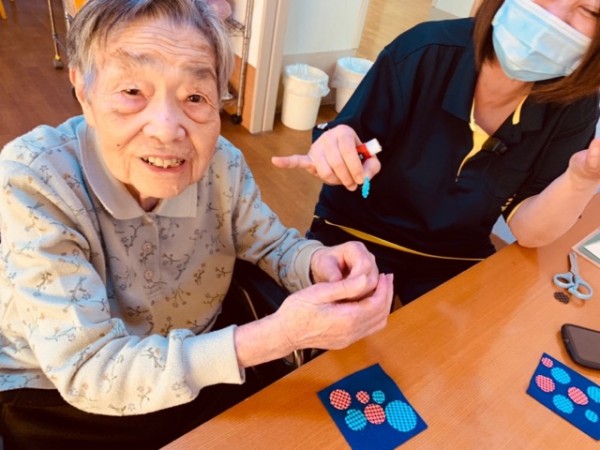 101歳様、丸がフエルトじゃなく、ご自分の手にくっ付いてしまい