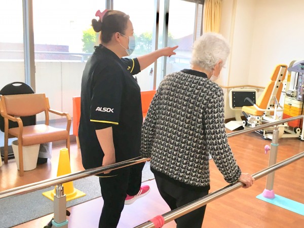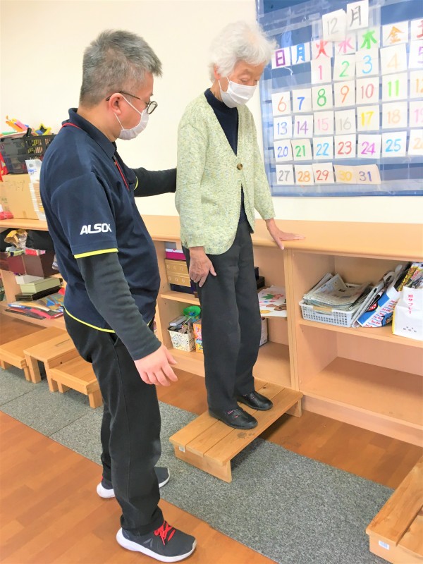 平行棒や踏み台を用いて、つまづき予防の歩行練習も行っていますよ。