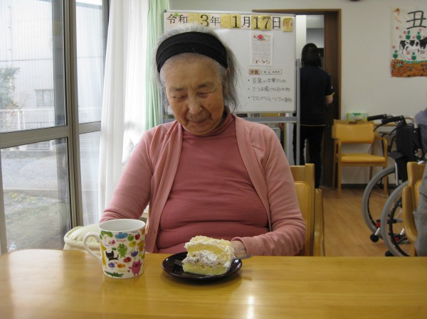 こんにちは!グループホームみんなの家・あきがせのブログ介護です。よろしくお願いいたします。お誕生日会ということでケーキを手作りしました!ケーキを召し上がられて歌を合唱しお祝いをしました。この年になると誕生日は嫌ですよね・・・ 《やりたくない》とお話しされました。でも、嬉しそうでした。一年に一度ですのでささやかなお祝いをしていきたいと思います。今度は2月です。