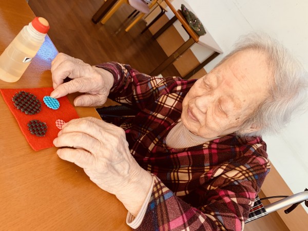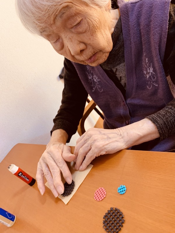 男性入居者さまもコースター作りにご参加いただきます!