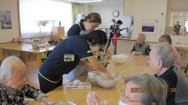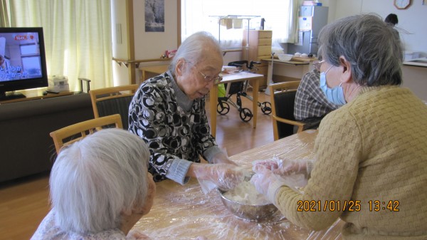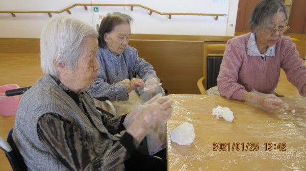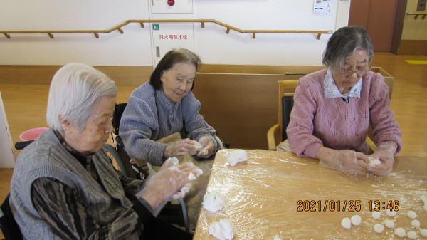 本日はご入居者様とスタッフの最強タッグにて、ぷにぷにの白玉ぜんざい作りに挑戦です!!