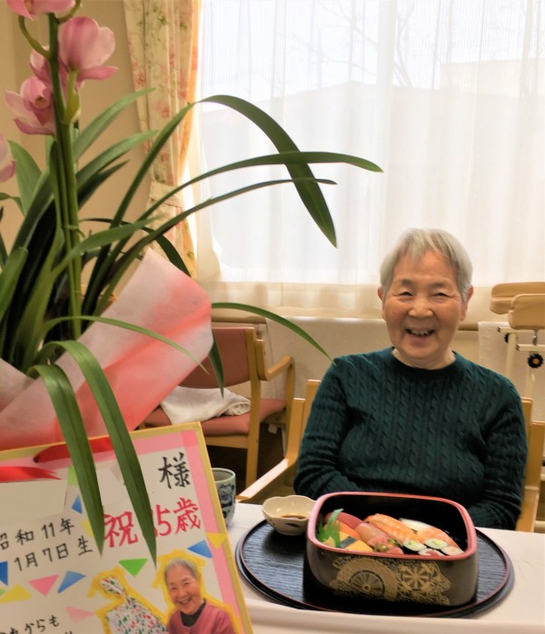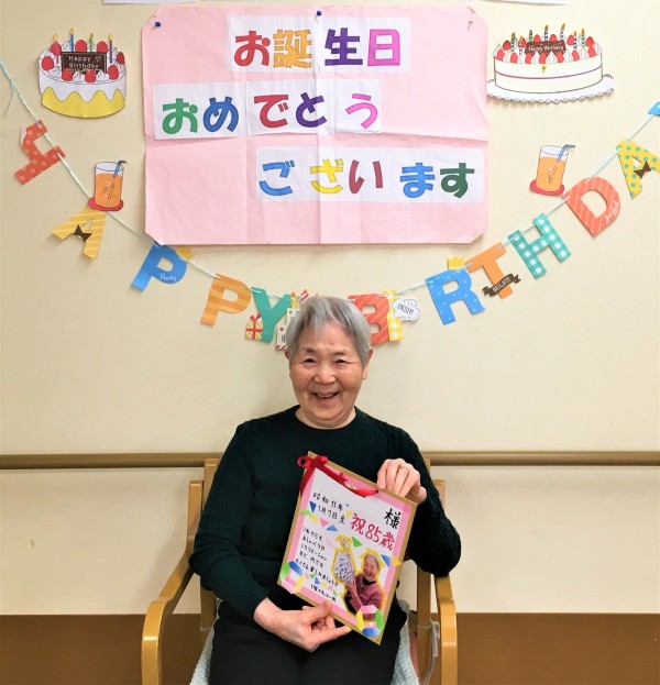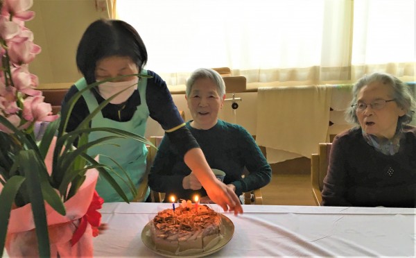 その後1階フロアーも続きまして1月生まれの入居者様のお祝いをいたしました!