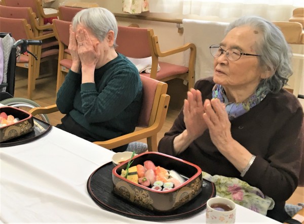 主役直々のお言葉でしたのでお祝いの歌はやめて、お寿司に舌鼓を打ちつつご歓談を楽しむ昼食が始まるのでした。