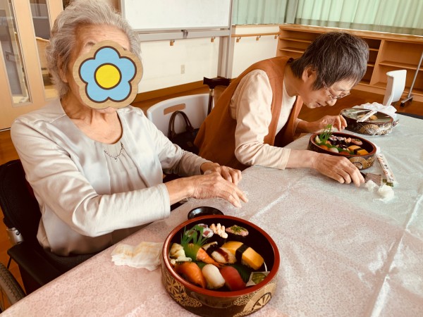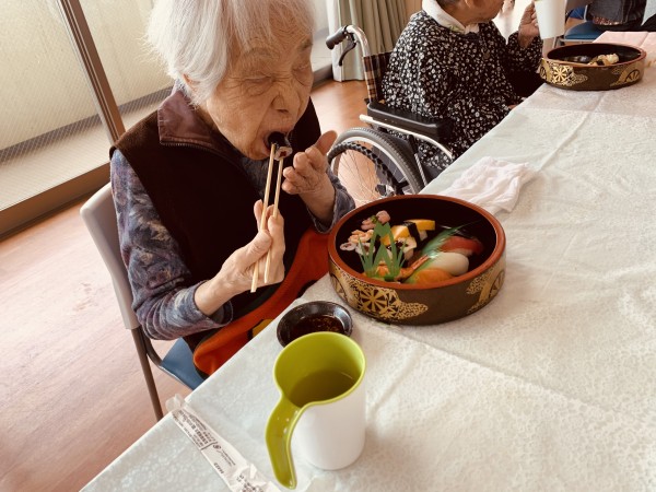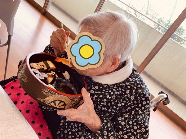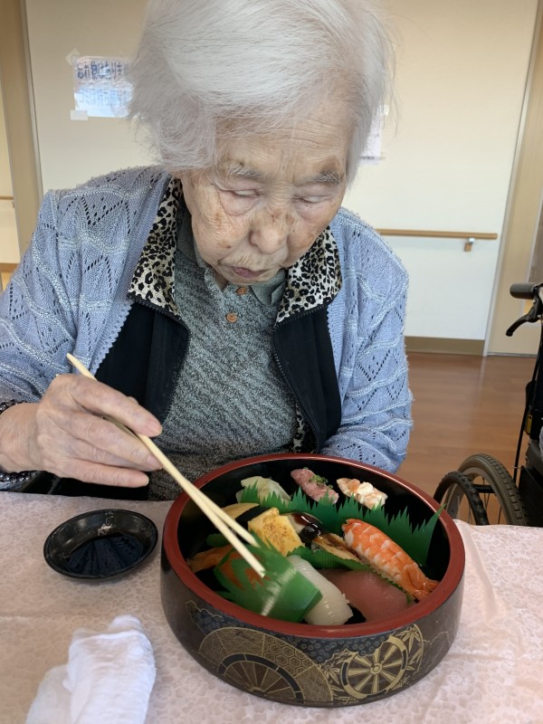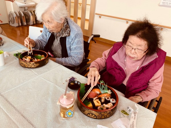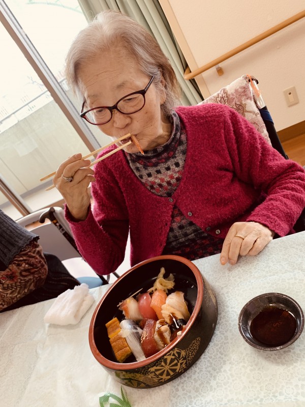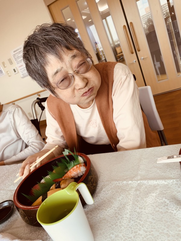 ちょうど朝に「そろそろお寿司とか食べたいね」とおっしゃっていた入居者さま!!