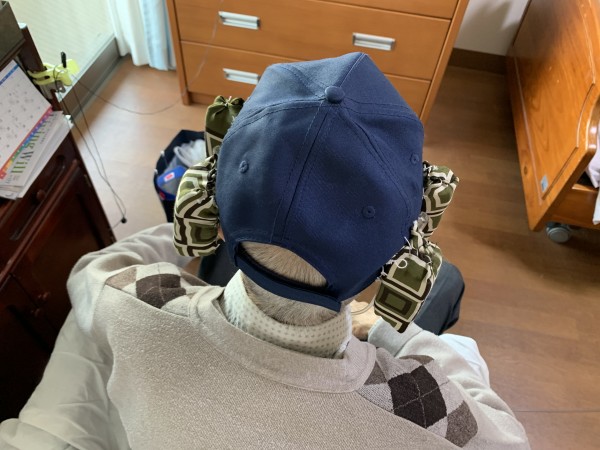 なんとこの度、こちら↓の半年前のブログにてご紹介させていただいた帽子の、"快適に眠れる用バージョン"が完成したそうでございます。。。!