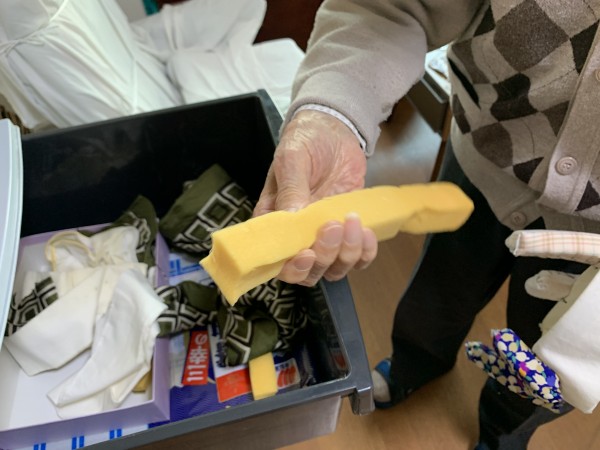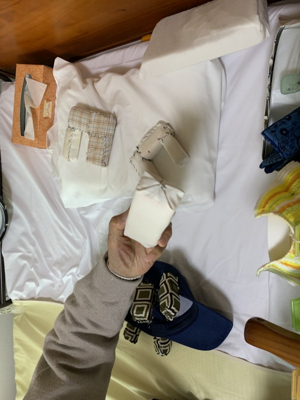 こちらはこの(不要になった)チューブも再利用して作ったマスク。。。!!(よだれポケット付)