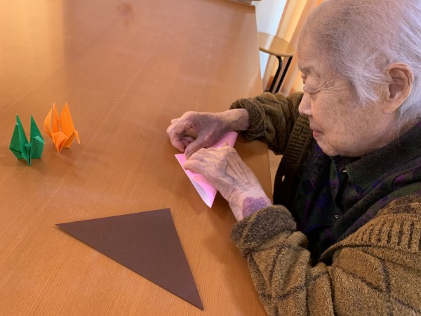 ではでは。。指の運動を一緒にしませんか?(千羽鶴お手伝いおねがいします)