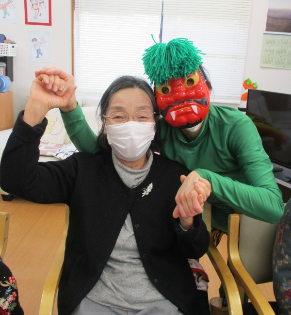丑年 年男のご利用者の方が鬼のお面をかぶって