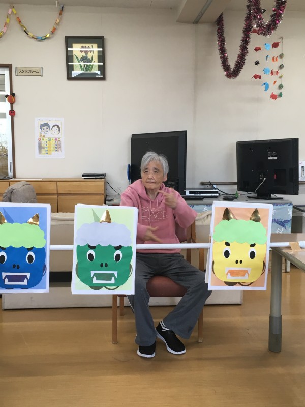 皆様で鬼退治!優しく投げる人,思い切り投げつける人,性格出るな~と思いながら,写真撮影をしているblog担当でした。