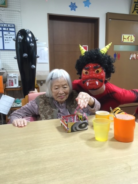 皆さんは豆を投げて鬼を退治しました♪