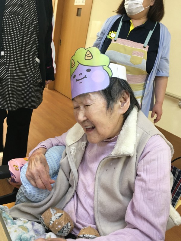 コロナ禍で、施設内で過ごされておられるため、行事時に参加されると皆様笑顔になって頂けます。残念なことにお二人の入居者様が、現在入院中で、参加できませんでした。早く施設に戻り、皆様と楽しく過ごせる様お祈りし例ます。