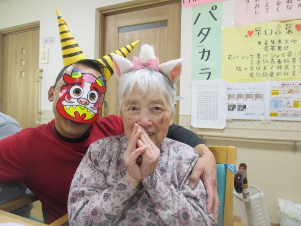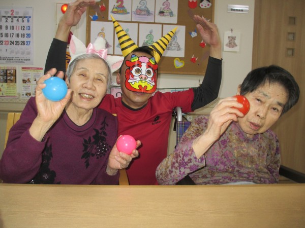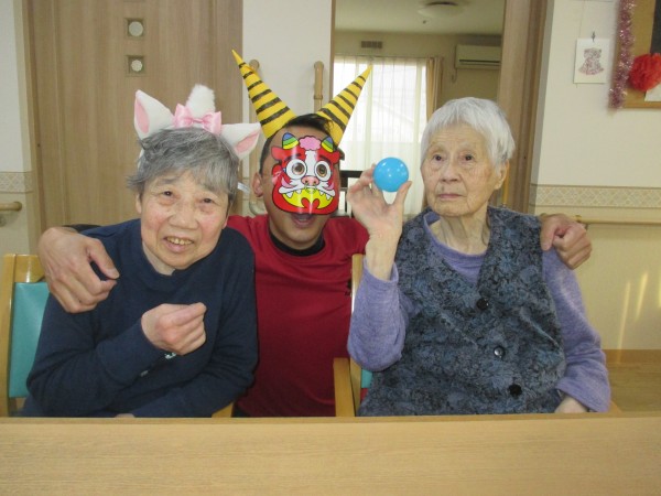 ご入居者様に現れた赤鬼めがけて投げていただきました。