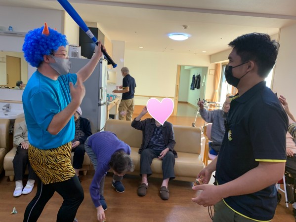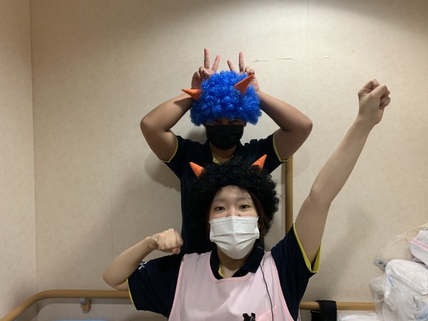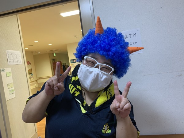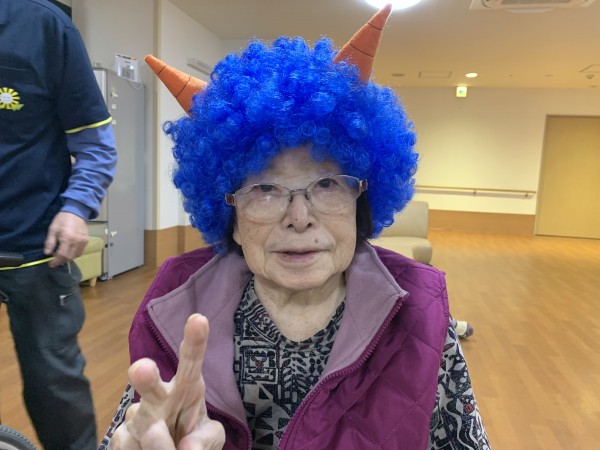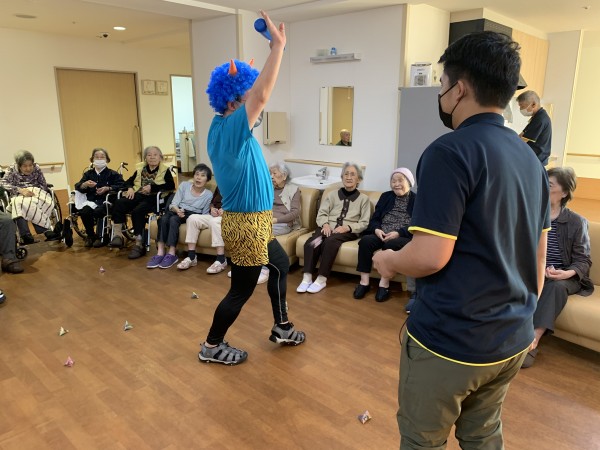 ネルソン介護職員の、初めての豆まきでした。